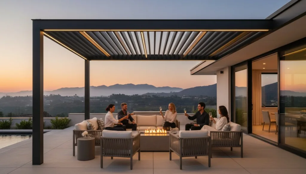 Modern design in Los Angeles favors clean lines and bold contrasts. Current trends show that 68% of luxury homeowners now select “Apollo Black” or “Dark Bronze” finishes to create a striking visual profile. These colors allow the structure to disappear into the landscape or stand out as a contemporary statement piece. Whether your home is a 1950s Mid-Century Modern gem or a 2025 Contemporary Minimalist estate, the structure must feel intentional. Integrating the cover with existing stone work or poolside hardscaping ensures the transition from the kitchen to the lounge feels natural and harmonious.